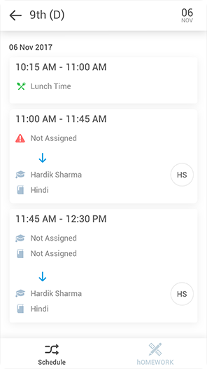 Know Schedule of any teacher or class on your fingertips in case of any changes in a schedule change it from your app itself.