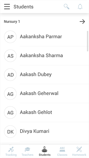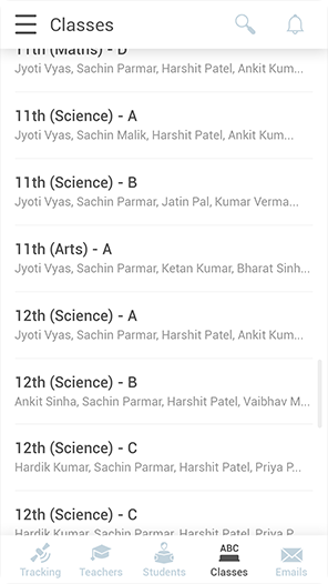Get list of all Classes of the institute Know their Schedule, Result, Attendence, Homework just by selecting any Class.
